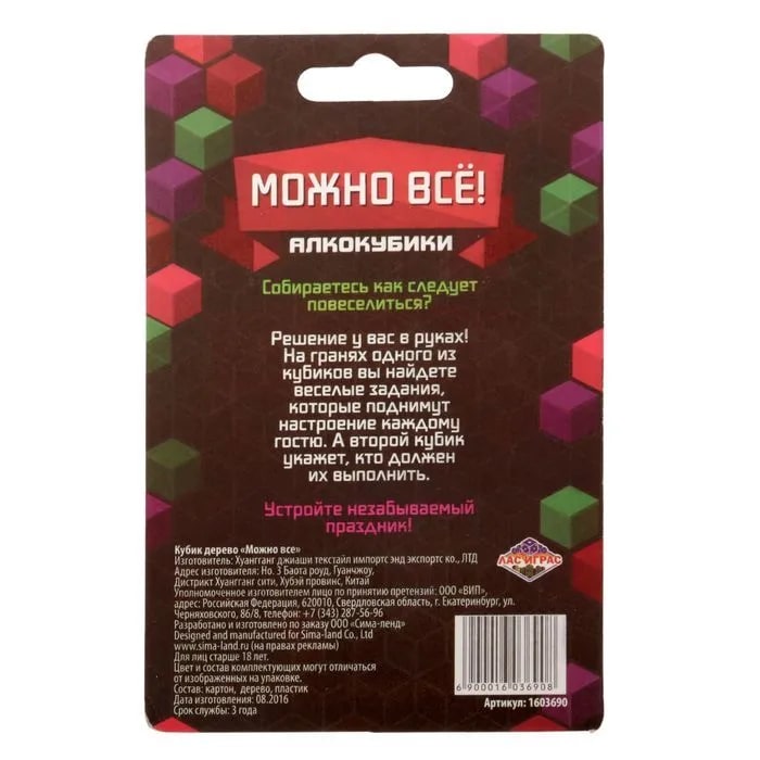 Купить кубик "можно все", алкокубики для принятия решений от 60 руб. с доставкой до пункта выдачи в Каслях. Интернет магазин ДекаМаркет. Оплата при получении.